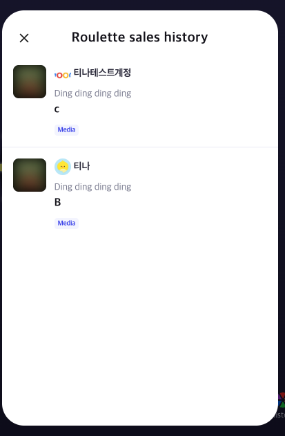 - Tap the top-right menu in the chat > [Roulette Sales History].