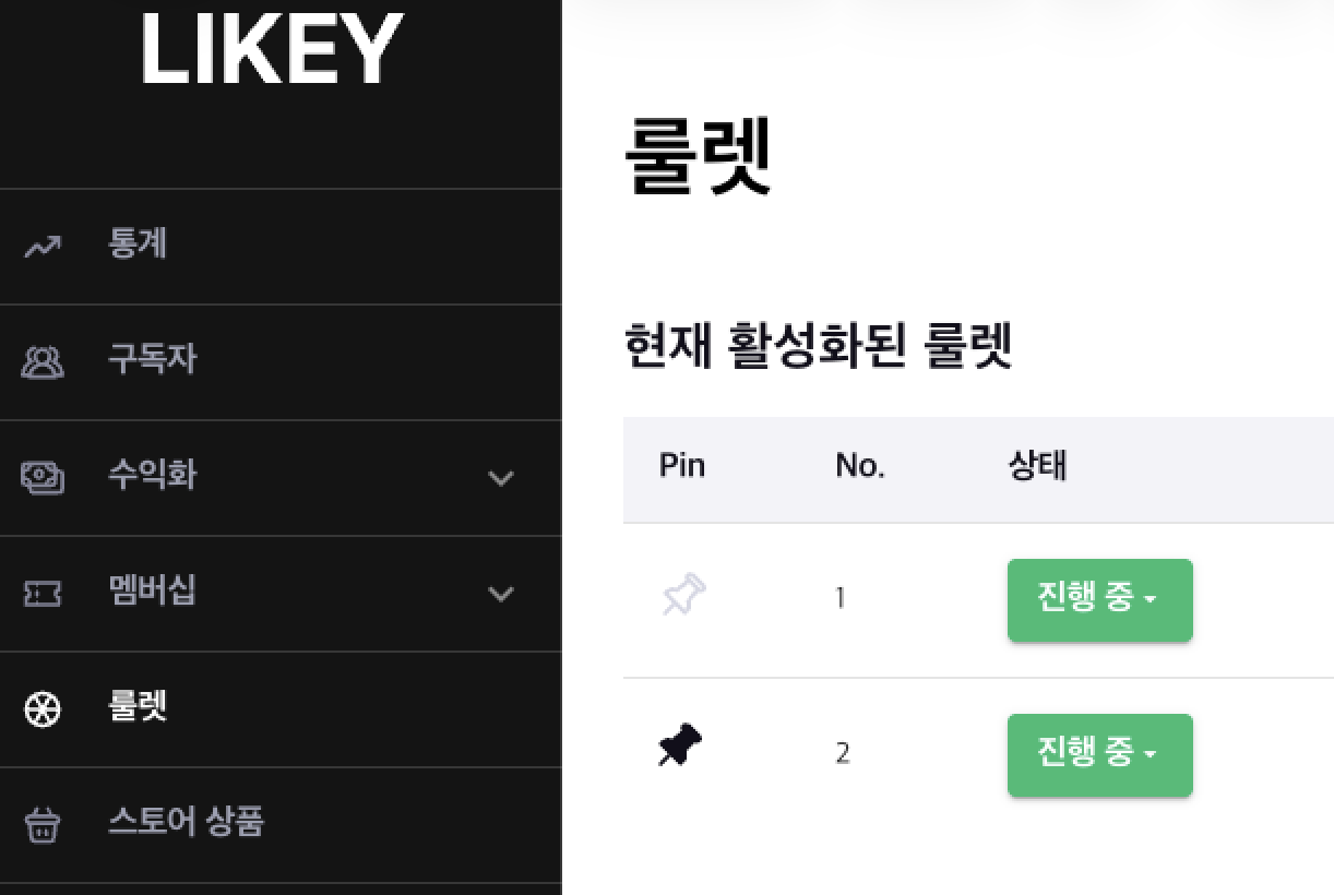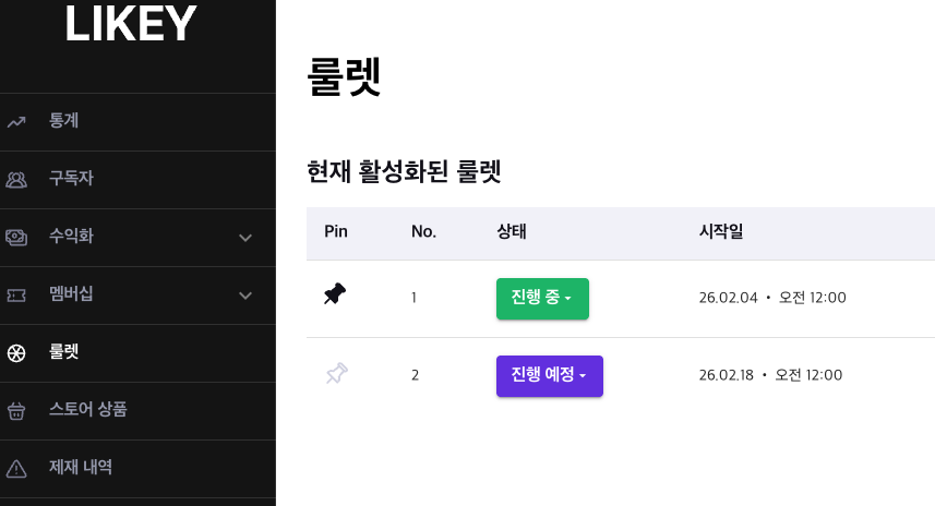 기존에는 크리에이터 1명당 룰렛 1개만 운영할 수 있었지만, 이제는 여러 개의 룰렛을 동시에 활성화할 수 있습니다.