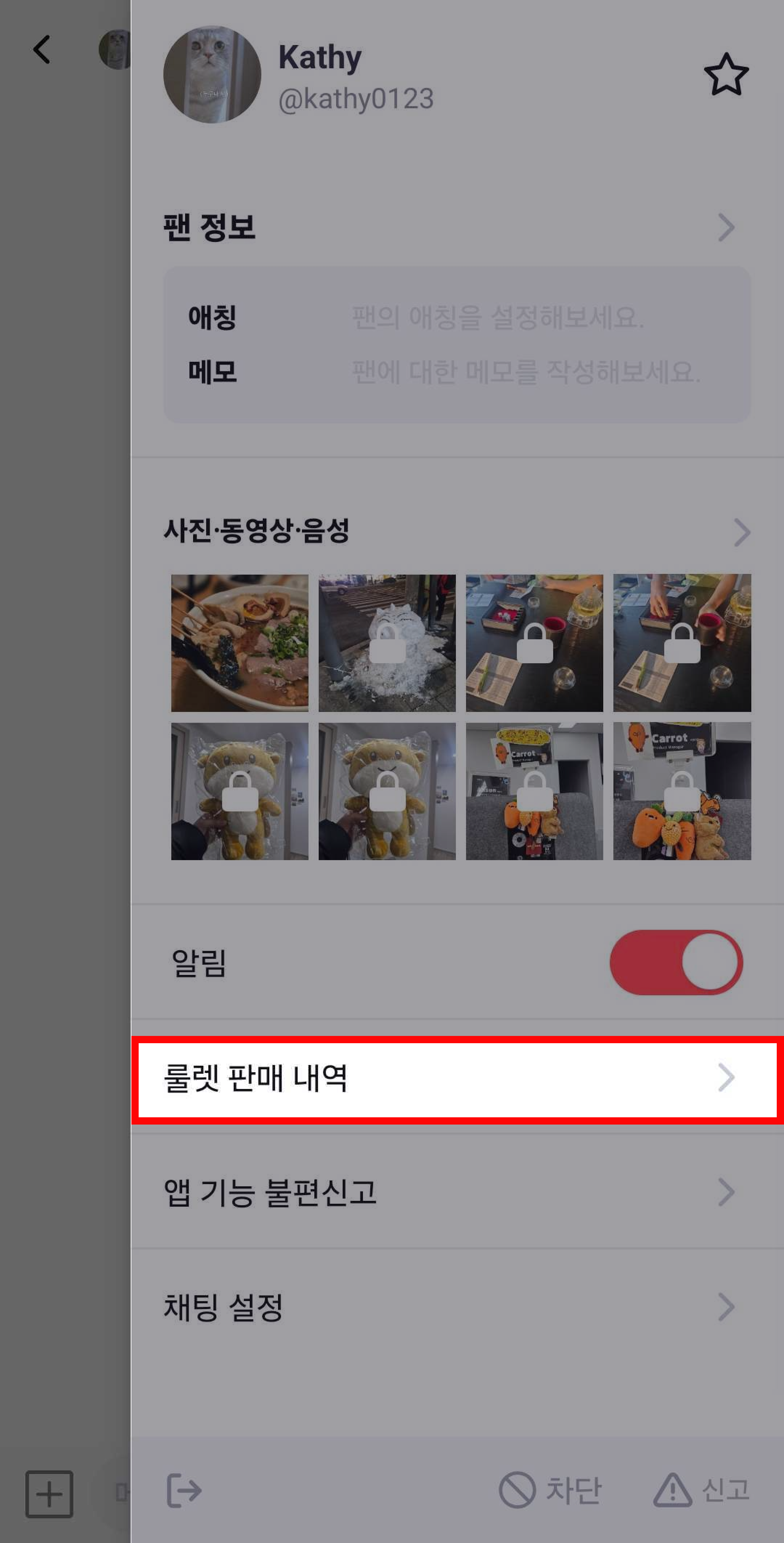 2. 팬과의 채팅방 > 룰렛 판매 내역